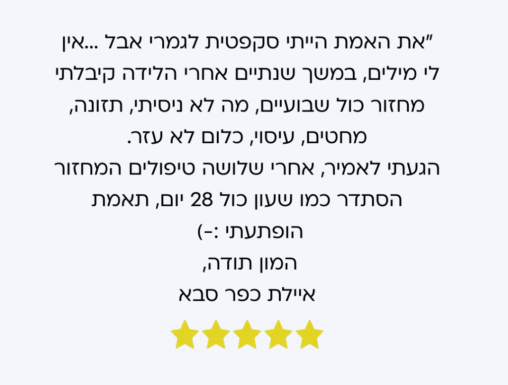 הטיפול שאני מציע נועד להחזיר לאיזון את הגוף לאחר לידה.