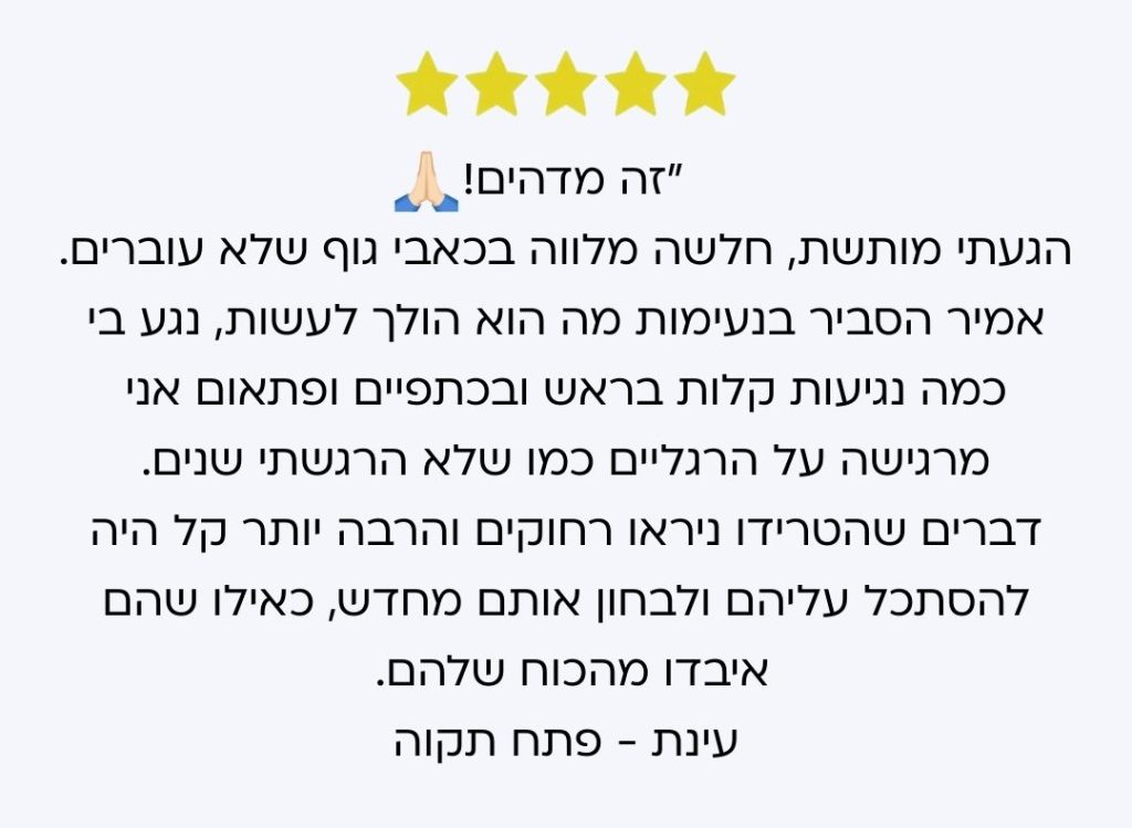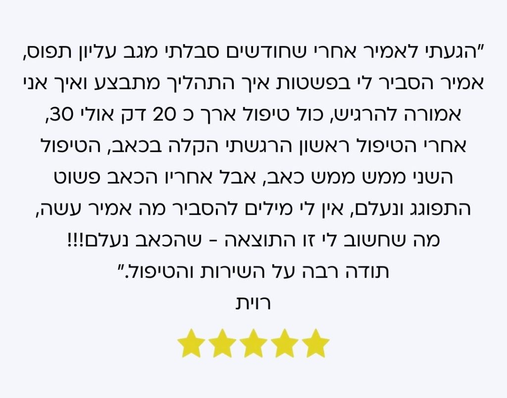 באמת נחסכו לי הזרקות של סטרואידים לכף היד, ומתפקד רגיל וזאת לאחר מעל לשלושה חדשים של מוגבלות קשה של האגודל.